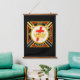 The polyester fabric displayed many wrinkles and several sharp creases throughout. At the bottom of the tapestry, I noticed a bulge in the fabric because it was not pulled tight enough before being connected to the wooden boards. It took me over an hour to spay water on the tapestry before putting it on an ironing board where I used a warm iron over a polyester cloth to remove the wrinkles and creases in the material. I was able to get out the wrinkles and creases that made that tapestry look as beautiful as its picture.