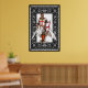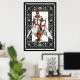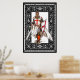knight templar in armor poster shows a medieval crusader knight from medieval england in full armor with the red symbolic cross of england which is from the crusades at the time when King Richard the Lion Heart was on the throne. Surrounded by an arabic patterned border in black and white this Knight Templar strides through toward you with sword in hand and shield on his arm. Makes a stunning image for all fantasy or historic role players, gamers or history lovers of british history and interactive games.