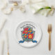 Boys knights medieval shield birthday party disposable party paper plates. Personalize with your own birthday boys name and age. Currently reads Happy 6th Birthday Christopher. Ideal for childrens knight and maidens birthday parties. Matches other items in the knight shield medieval party range. Original art and design by Sarah Trett. www.sarahtrett.com for www.mylittleeden.com