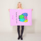 This cozy blanket for a knitter is personalised with a name, and has five cartoon style sheep in pink, blue, yellow, green and turquoise, above the words "Knit one. Purl one." The background is pale pink.