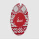 Products in the 'Knitted Xmas' collection are fully customisable with either a plain look or can be personalised with a name, monogram, initials or a number on a red circle or square label with a white dotted border.