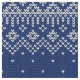 This charming fabric features a delicate knit-inspired pattern that evokes the cozy texture of a classic sweater, reimagined in a refined and modern way. Set against a rich navy blue background, soft ivory stitch motifs form an intricate, repeating design that feels both warm and elegant.
