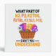 Knitting quotes design that reads: What Part Of K2 P3 K2TOG P2Tbl K3 SL1 M1L . Knitting design with a knitting basket, scissors and wool for women who like to do needlework in their spare time.
