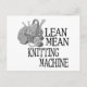 "Lean Mean Knitting Machine" - a funny saying for knitters with graphics showing a basket with wool and knitting needles. Knitting humor for knit wits!