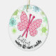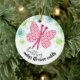 Pretty knitting needles butterfly with balls of yarn snowflakes on this Christmas ornament for your favorite knitter.