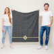 Knitting Needles Crafts Initial Gold + Navy Fleece Blanket