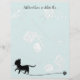 Scrapbook and craft paper with a knitting theme. Pale blue-green color with all over light pattern of knitting needles and yarn. A black cat pulls a strand of yarn from a ball at the bottom of both sides. Black text at the top can hold a title or other text, which aligns to the top of the page. Wording can also be deleted. Use in scrapbooking or for other fiber arts and crafts.