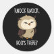 Knock Knock Hoos There Funny Owl Pun Dark BG Classic Round Sticker