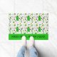 Funny doormat printed with a colourful gin cocktails pattern with a green strip across the bottom and the phrase KNOCK KNOCK IT'S GIN O'CLOCK. Perfect for gin lovers, bartenders and mixologists