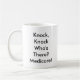 Enjoy this satire mug featuring a pen sketch of senior citizen knocking on the door. Knock knock, Whose there? Medicare Find this design on a number of other items including mousepads, t-shirts, stickers and more