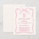 A soft ivory colored background, decorated with a hand drawn pink bow. Personalize and add a name and party details.