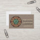 A ring of Celtic knotwork surrounds the central spiralling triskele in this business card design; a matching border spans the top of the card.
