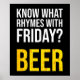 Know What Rhymes With Friday? Beer. This funny beer lover design is great for anyone who loves craft beer, ipa, lager and pale ale. Take this to your next visit to a bar, brewery, pub or party, and enjoy drinking a cold pint of beer with your friends! If you love to visit craft beer breweries and pubs, and start your weekend with a nice cold glass of beer, this accessory is for you!