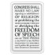 The text of the First Amendment to the United States Constitution (1st Article of the U.S. Bill of Rights) protects fundamental freedoms: freedom of religion, freedom of speech and freedom of peaceful assembly (the right to protest or demonstrate). The blue background color can be customized to the color of your choice.