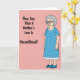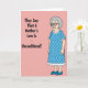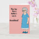 Designed with a blush pink background, this card sets up a funny contrast between the words and the character. On the left side, black sans-serif text reads, “They Say That A Mother’s Love Is Unconditional!” and it sits in the upper and middle area with plenty of open space around it. On the right, a full-body cartoon of an older woman stands upright, giving a knowing, slightly unimpressed look that feels like a teasing nudge ❤️. She wears a periwinkle blue dress with lighter polka dots and white scalloped trim, along with matching blue flats, keeping her look tidy and put-together. Silver-gray curls frame her face, and thick dark-rimmed glasses and a subtly downturned mouth suggest she’s seen enough to raise an eyebrow at the statement. Small golden hoop earrings add a warm detail, like the kind of accessory you notice when someone leans in close for a familiar chat 🌼. The woman is placed to the right of the text, facing forward, with her hands relaxed at her sides and her dress pattern clearly visible.