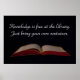 A poster featuring a photograph of a book with a saying about how knowledge is free at the library.