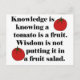 Knowledge is knowing a tomato is a fruit. Wisdom is not putting it in a fruit salad.