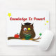 The original wise owl wearing a tassel and reading on a tree with a quote of an English philosopher, Francis Bacon, "Knowledge Is Power!" Great for students and book lovers! Unique gifts for back-to-school, graduations, school events, and other special occasions!