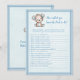 Adorable brown and blue baby bear for a boy's baby shower. Who Knows Daddy Best? baby shower game. Bllue blanket with blue stitched edge border for background. Templates provided on back.