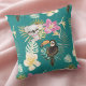 Here's a bright, colorful and happy pillow that kids and adults both will love! It features a tropical design with a cute koala bear, toucan bird, pink hibiscus flower and tropical leaves, with a smattering of gold confetti flakes. Everything is placed on a pretty teal green background. The pattern is repeated on the back side of the pillow.