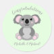 Koala Bear Baby Shower Green Gender Neutral Classic Round Sticker