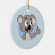 Ceramic Ornamentr with illustration of head of a cute little koala bear in blue circle on blue background, cute wild animal design for kids by Maxi Harmony; great decoration for your child's birthday party