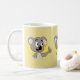 Mug with illustration of head of a cute little koala bear in yellow circle on yellow background, cute wild animal design for kids by Maxi Harmony; great decoration for your child's birthday party
