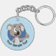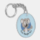 Acrylic keychain with an illustration of a cute little koala bear in blue circle, cute wild animal design for kids by Maxi Harmony;
