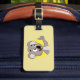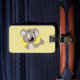 Luggage Tag with illustration of head of a cute little koala bear in yellow circle on yellow background, cute wild animal design for kids by Maxi Harmony; great decoration for your child's birthday party