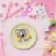 Paper Plate with illustration of head of a cute little koala bear in yellow circle on yellow background, cute wild animal design for kids by Maxi Harmony; great decoration for your child's birthday party