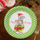 Modern bright Christmas painted Koala bear festive paper plates with green and white polka dot border. Original watercolor art and design by Sarah Trett.