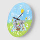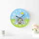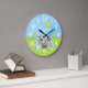 This cute and whimsical clock can be personalized with a name. It features adorable koala bears having a picnic on a blue gingham cloth with treats such as honey, watermelon, strawberry jam, lemonade and pie. In the background is a bright blue sky and sunshine, butterflies and daisies.