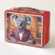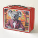 This is a standard metal lunchbox that appears to work just fine. We designed this box ourselves with an uploaded photo and custom text on the front and back. It looks absolutely beautiful except the front of the lunchbox is not centered like it shows in the photo. The print borders don't align with the inset flat part of the box where the preview photo online showed it perfectly centered in there. The back looks nice and centered though.