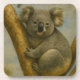 This serene wildlife art print captures a koala perched peacefully on a tree branch, its limbs gently gripping the bark as soft light filters through the forest canopy. The detailed fur texture and expressive gaze evoke a sense of quiet awareness, while the warm and cool tones of the background suggest a tranquil moment in nature’s embrace.
