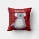 Front of pillow features a Koala Mum with her Joey on a buffalo plaid background and the words "Squeeze me like a Koala". Other side features matching plaid background and a sleeping Koala with the words "Koala Time". All words can be changed.