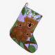 Perfect! Exactly what I ordered! I uploaded a picture of my blue chow, and the screen print was incredible. the back side of the stocking was the red and black checkered print. my puppy's name was also printed on the cuff of the stocking. PERFECT! Highly recommend this product! My puppy's name was screen printed onto the cuff of the stocking, the font was perfect!