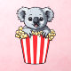 Cute Koala in a box of popcorn.