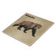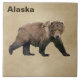 Features a digital painting of a Kodiak Bear on a neutral parchment, or old paper, background. Text reading "Alaska" also appears. The Kodiak Bear (Ursus arctos middendorffi), a subspecies of the brown, or grizzly, bear are the world's largest bears. A full grown male can be over ten feet tall when upright on his hind legs and weigh over 1500 pounds - truly a sight to behold. One bear in the Bismarck, North Dakota zoo was estimated to have weighed as much as 2400 pounds. The bears live on the islands of Alaska's Kodiak Archipelago. Today there are approximately 3500 Kodiak bears and their numbers are increasing due to the generally excellent condition of their habitat including sufficient fist to eat. They are called "takuka-aq" in Alutiiq, the language of the people's native to that area. The bears are believed to have been isolated there since toward the end of the last Ice Age over 12,000 years ago. Though they are the largest terrestrial carnivore their diet includes large amounts of grass, other plants and berries. Today there are approximately 3500 Kodiak bears and their numbers are increasing due to the generally excellent condition of their habitat including sufficient fish to eat. Due to the abundance of food resources Kodiak bears have smaller home ranges than any other brown bears and have no need to defend territories. The Alutiiq people hunted bears for food, clothing and tools. Arrows, spears, and a great deal of courage were required hunting equipment. Bear heads were usually left in the field as a sign of respect to the spirit of the bears.