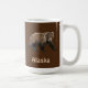 A digital painting of a Kodiak Bear. Customizable text reading, "Alaska" appears under the bear and you may your own additional text on the reverse side. The Kodiak Bear (Ursus arctos middendorffi), a subspecies of the brown, or grizzly, bear are the world's largest bears. A full grown male can be over ten feet tall when upright on his hind legs and weigh over 1500 pounds - truly a sight to behold. One bear in the Bismarck, North Dakota zoo was estimated to have weighed as much as 2400 pounds. The bears live on the islands of Alaska's Kodiak Archipelago. Today there are approximately 3500 Kodiak bears and their numbers are increasing due to the generally excellent condition of their habitat including sufficient fist to eat. They are called "takuka-aq" in Alutiiq, the language of the people's native to that area. The bears are believed to have been isolated there since toward the end of the last Ice Age over 12,000 years ago. Though they are the largest terrestrial carnivore their diet includes large amounts of grass, other plants and berries. Today there are approximately 3500 Kodiak bears and their numbers are increasing due to the generally excellent condition of their habitat including sufficient fish to eat. Due to the abundance of food resources Kodiak bears have smaller home ranges than any other brown bears and have no need to defend territories. The Alutiiq people hunted bears for food, clothing and tools. Arrows, spears, and a great deal of courage were required hunting equipment. Bear heads were usually left in the field as a sign of respect to the spirit of the bears.