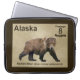 Another in the series of postage stamps for a hypothetical independent nation of Alaska. Features a digital painting of a Kodiak Bear on a neutral parchment, or old paper, background. Text reading "Alaska," "Postage 8 Nuggets," and Kodiak Bear Ursus arctos middendorffi" also appear. The Kodiak Bear (Ursus arctos middendorffi), a subspecies of the brown, or grizzly, bear are the world's largest bears. A full grown male can be over ten feet tall when upright on his hind legs and weigh over 1500 pounds - truly a sight to behold. One bear in the Bismarck, North Dakota zoo was estimated to have weighed as much as 2400 pounds. The bears live on the islands of Alaska's Kodiak Archipelago. Today there are approximately 3500 Kodiak bears and their numbers are increasing due to the generally excellent condition of their habitat including sufficient fist to eat. They are called "takuka-aq" in Alutiiq, the language of the people's native to that area. The bears are believed to have been isolated there since toward the end of the last Ice Age over 12,000 years ago. Though they are the largest terrestrial carnivore their diet includes large amounts of grass, other plants and berries. Today there are approximately 3500 Kodiak bears and their numbers are increasing due to the generally excellent condition of their habitat including sufficient fish to eat. Due to the abundance of food resources Kodiak bears have smaller home ranges than any other brown bears and have no need to defend territories. The Alutiiq people hunted bears for food, clothing and tools. Arrows, spears, and a great deal of courage were required hunting equipment. Bear heads were usually left in the field as a sign of respect to the spirit of the bears.