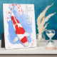 Red and white koi, known as a kohaku in japanese. With cherry blossoms and the japanese letters for "kohaku".