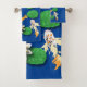 This colourful bath towel features my artwork of Koi Carp swimming amongst Lotus Flowers. Lovely to brighten up the bathroom and to team with coordinating mats and shower curtains.