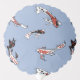 Features a graphic design of koi carp against a blue background, based on traditional Japanese art. The fish are ornamental animals often kept in ponds in oriental gardens, and they can symbolize romantic love, affection and friendship, because the word "koi" in Japanese is pronounced the same as another word that means "love".