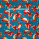 Decorative Koi fish pattern on a blue background.