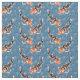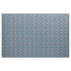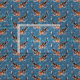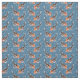 This illustrated fabric features realistic style illustrations of koi fish in orange, black and white set against a blue geometric pattern with the look of ocean waves.