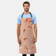 Great color and even though I ordered the kid size, it covers well enough to use during the holidays. I am not a big woman and prefer a shorter apron. I stand 5"6" and the length of the garment goes to mid-thigh. The tie straps fit well at my waist and even though there is no neck strap adjustment, the opening is plenty big enough. I am happy with the size and fit. I am sharing my apron with my 10 year old grandson, too! The color is vibrant and looks good, as shown on the website. The stitching looks strong and reinforced. Photographed is front side and back side of the apron, reinforced straps and coloring. My phone camera may not be the best at showing the details.