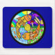 Item features a hand-drawn, digitally-colored mandala type design featuring koi fish, the different elements of nature, and a yin-yang type design. Design has a stained-glass appearance with a psychedelic touch of bright colors.