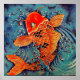 A bright Orange Koi Fish splashing in deep blue water. The Artwork was done with a hint of traditional tattooing in mind, as the artist is a retired tattoo artist. Artwork by Gregg’s Deep Colors.