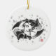 Lightweight, smooth, pure white ornament with nice sheen. Perfect size to be seen from across the room ... and to attract closer inspection! Price was great for ordering enough for the whole family! Clear, bold black design just as requested. Matches the order exactly. Just so nice!