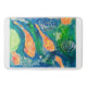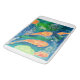 A bath mat with a calm water-color of a koi pond.